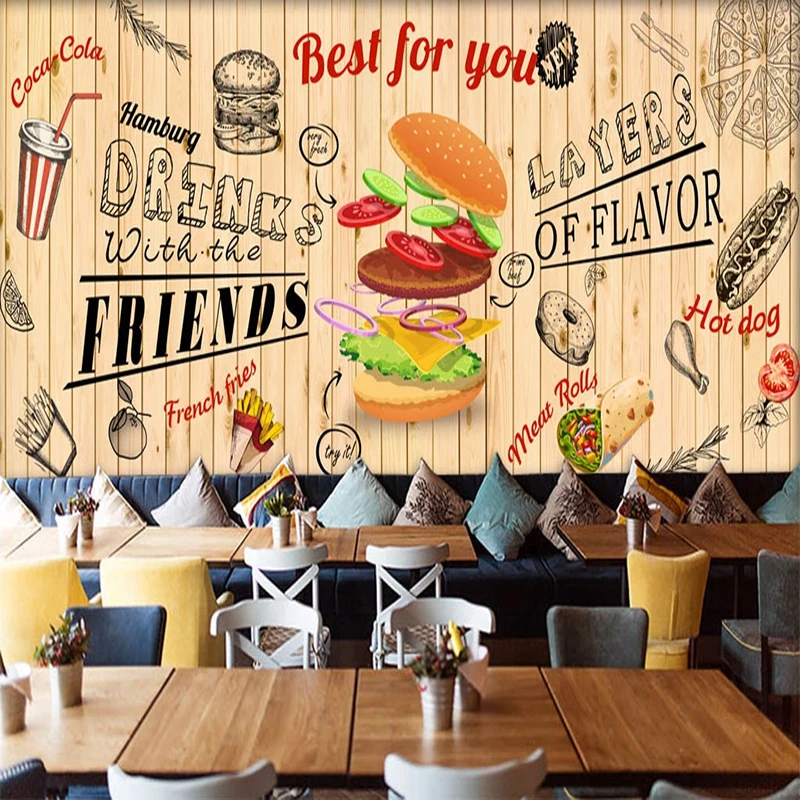 Custom Mural Wallpaper 3d Hand Painted Hamburg Fast Food Restaurant Snack Bar Wall Sticker 3d Self Adhesive Waterproof Frescoes Wallpapers Aliexpress